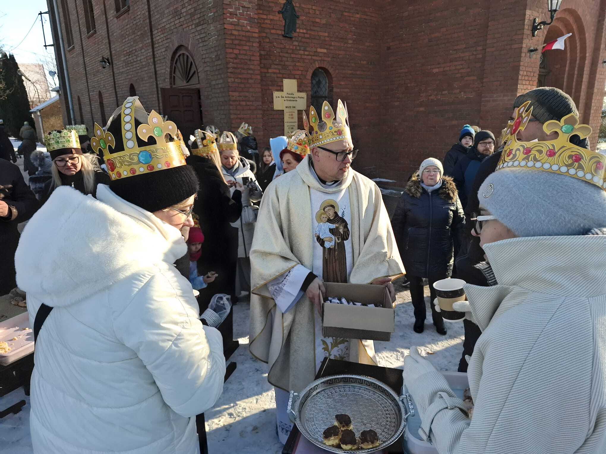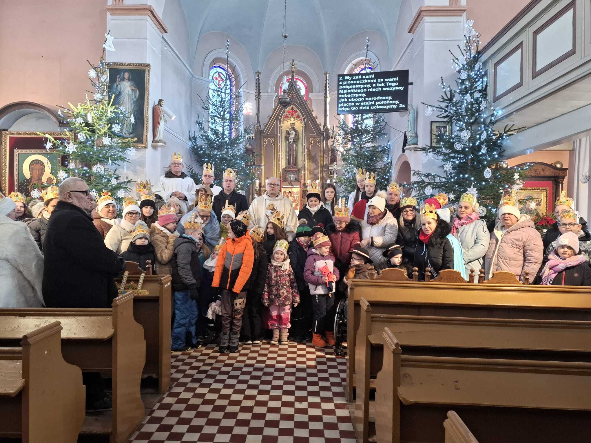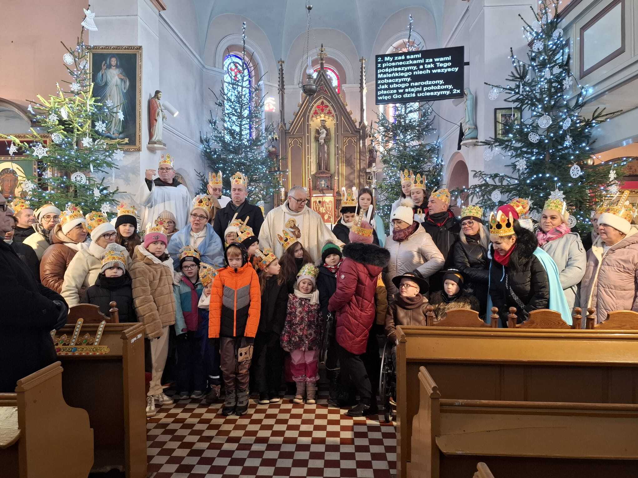 Święto Trzech Króli w naszej parafii. Uroczystości zgromadziła licznych parafian, którzy przyszli na Mszę Świętą w koronach, nawiązując do tradycji Mędrców ze Wschodu. Wraz z proboszczem wierni aktywnie uczestniczyli w liturgii, podkreślając radosny i wspólnotowy charakter tego dnia. Kolorowe stroje i wspólny śpiew kolęd stworzyły wyjątkową atmosferę jedności i świątecznej radości.