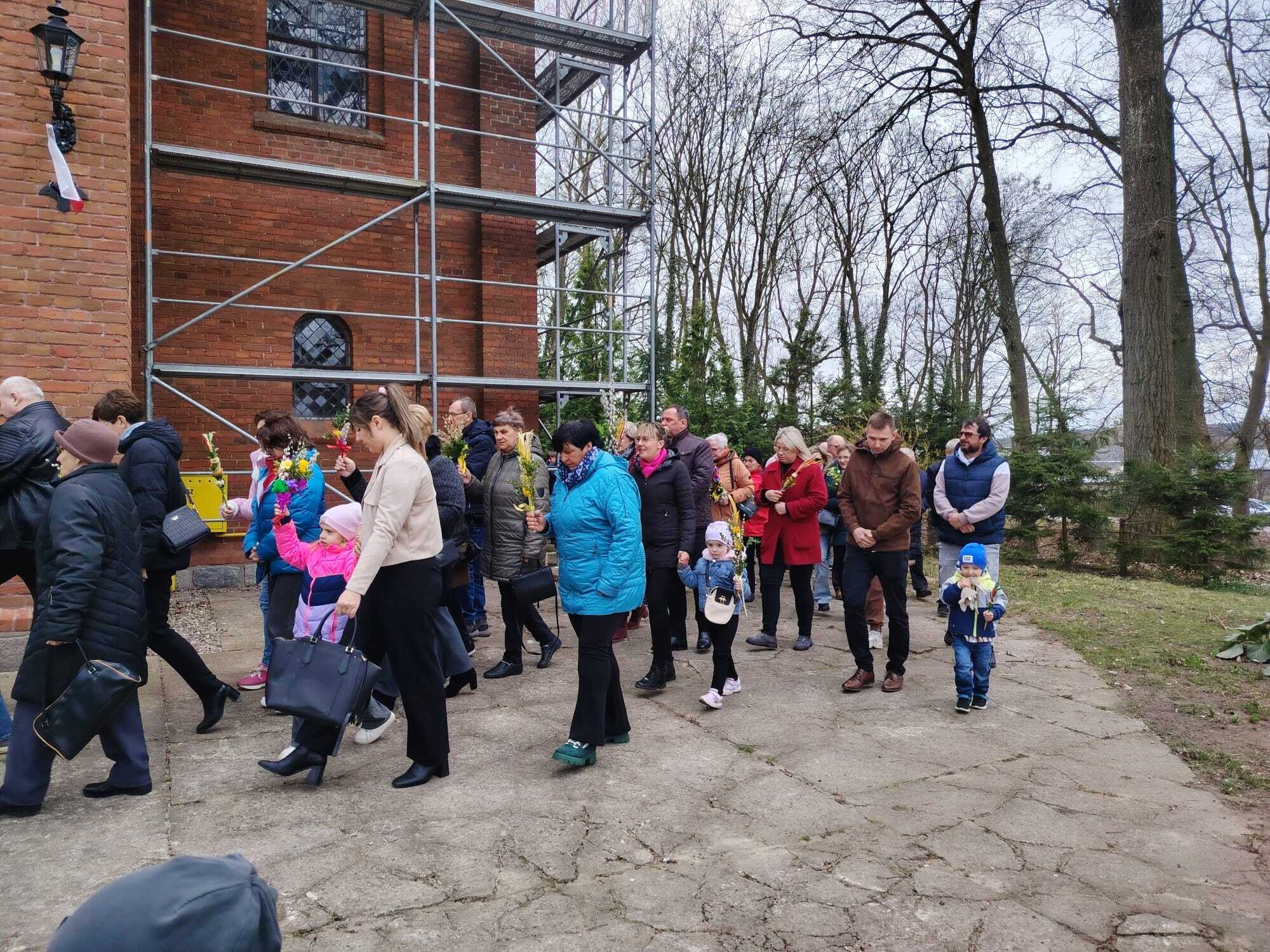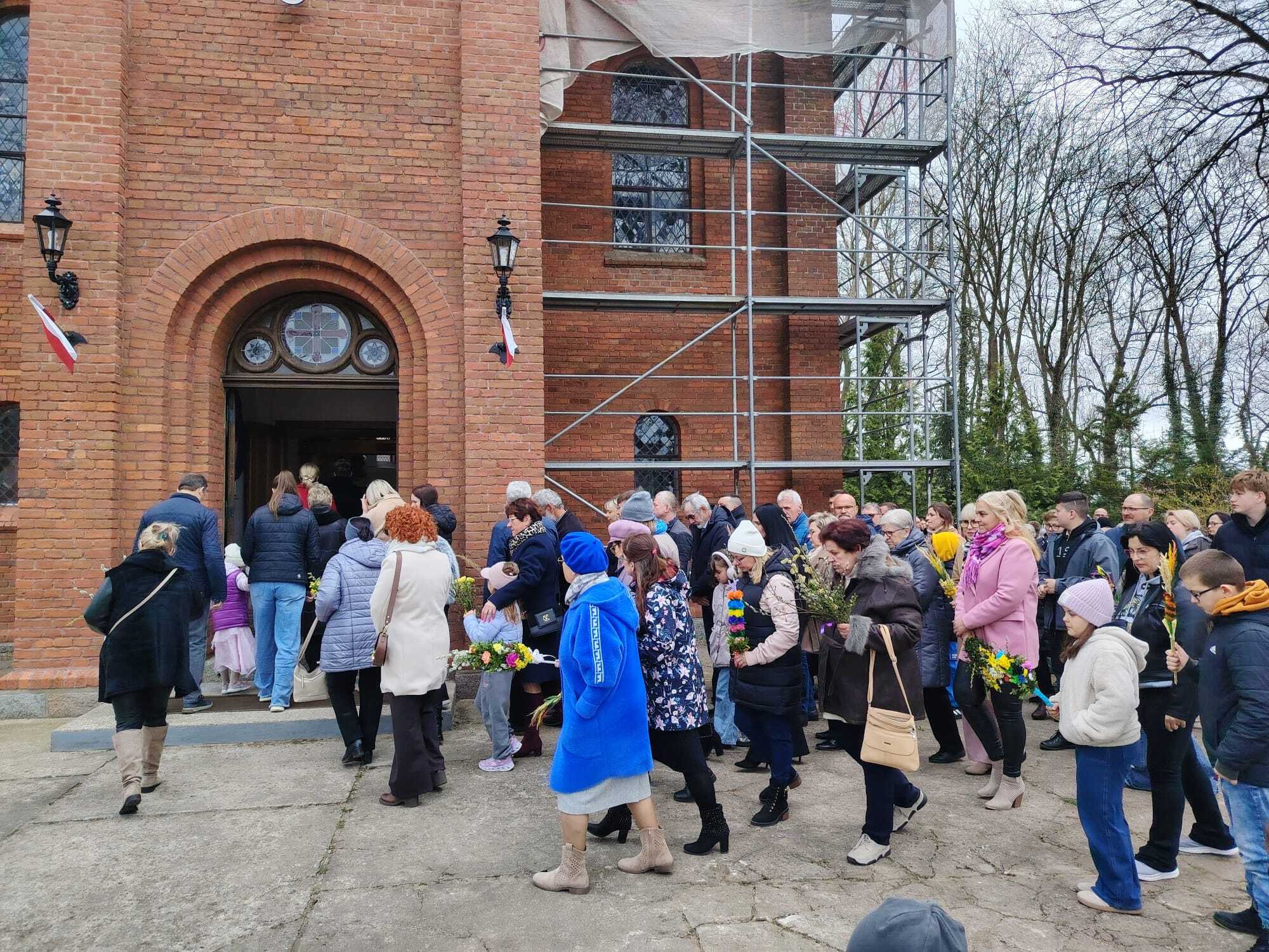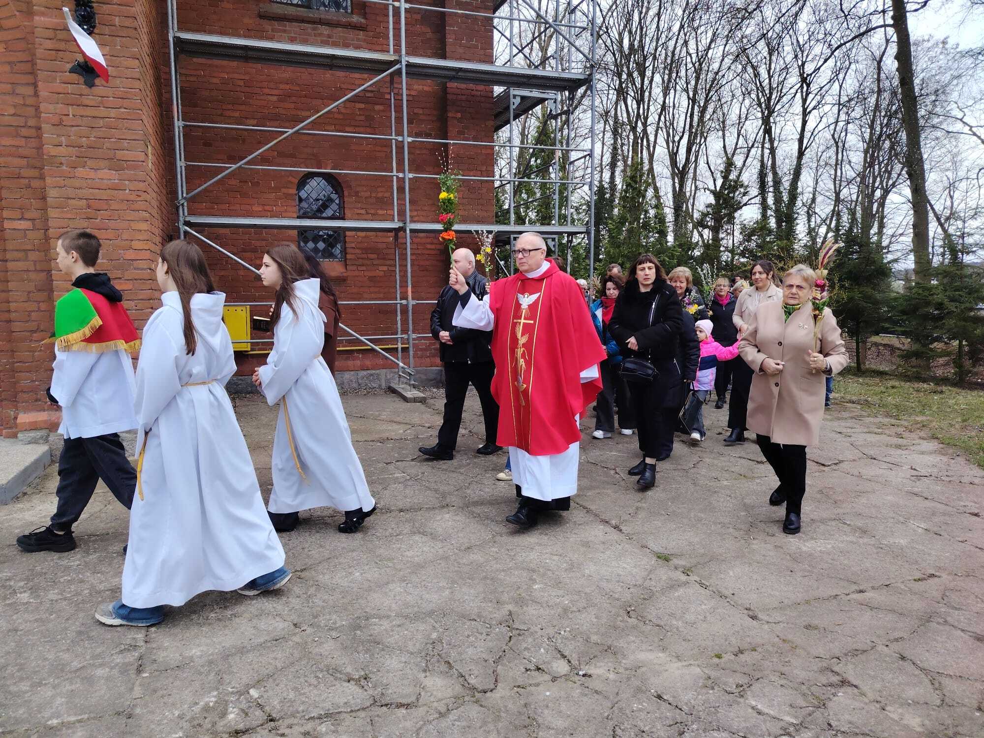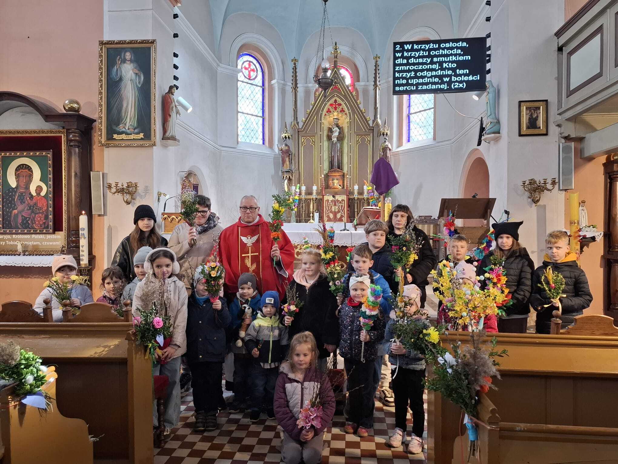 Niedziela Palmowa w Grabównie zgromadziła licznych wiernych, którzy przybyli do kościoła parafialnego, by wspólnie rozpocząć Wielki Tydzień. Uroczystości rozpoczęły się od poświęcenia palm – symbolu odradzającego się życia oraz radosnego powitania Jezusa w Jerozolimie. Kolorowe, ręcznie wykonane palmy, przygotowane przez całe rodziny, a także przez dzieci wraz z paniami z naszego przedszkola w Grabównie z grup "Żabki" i "Biedronki", nadały wydarzeniu wyjątkowy, lokalny charakter. Dzieci z przedszkola w Miasteczku Krajeńskim z grup „Tygryski” i „Motylki” pięknie pokolorowały obrazki przedstawiające palmy oraz wjazd Jezusa do Jerozolimy, które również przyozdobiły nasz kościół. W trakcie mszy świętej odczytano opis Męki Pańskiej, wprowadzając wiernych w refleksyjny nastrój nadchodzących dni. Wierni wzięli również udział w uroczystej procesji wokół kościoła, niosąc palmy i wspólnie śpiewając pieśni religijne. Atmosfera skupienia i wspólnoty przypomina o znaczeniu duchowego przygotowania do Świąt Wielkanocnych.